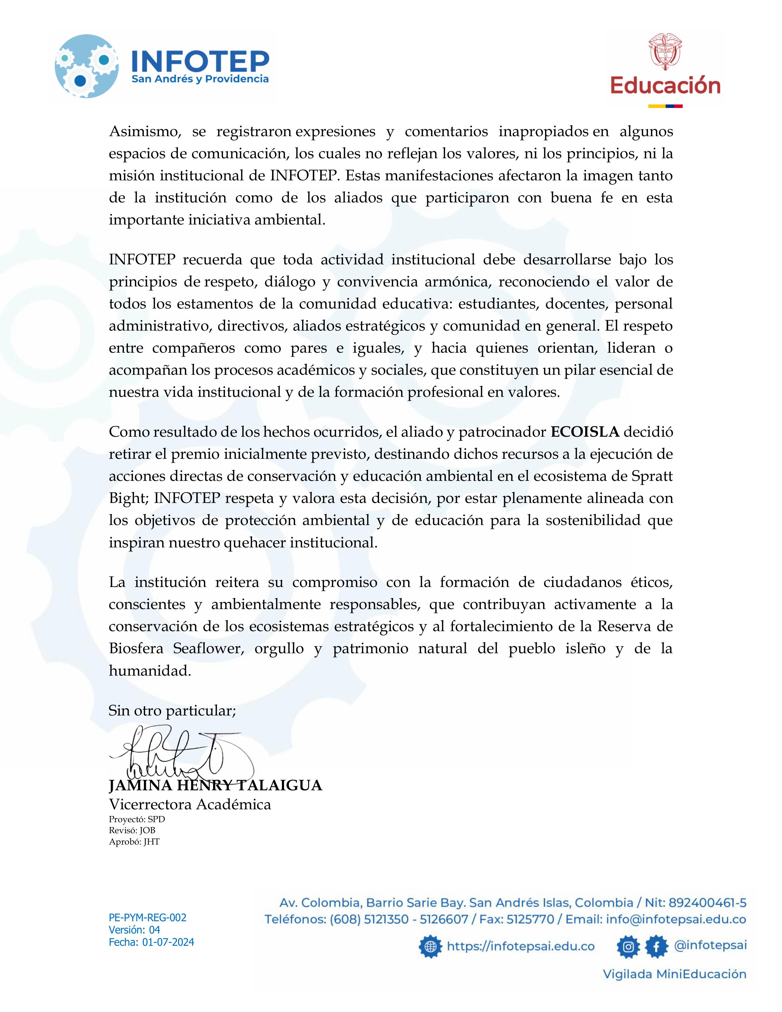 Correo Institucional: serviciocliente@infotepsai.edu.co