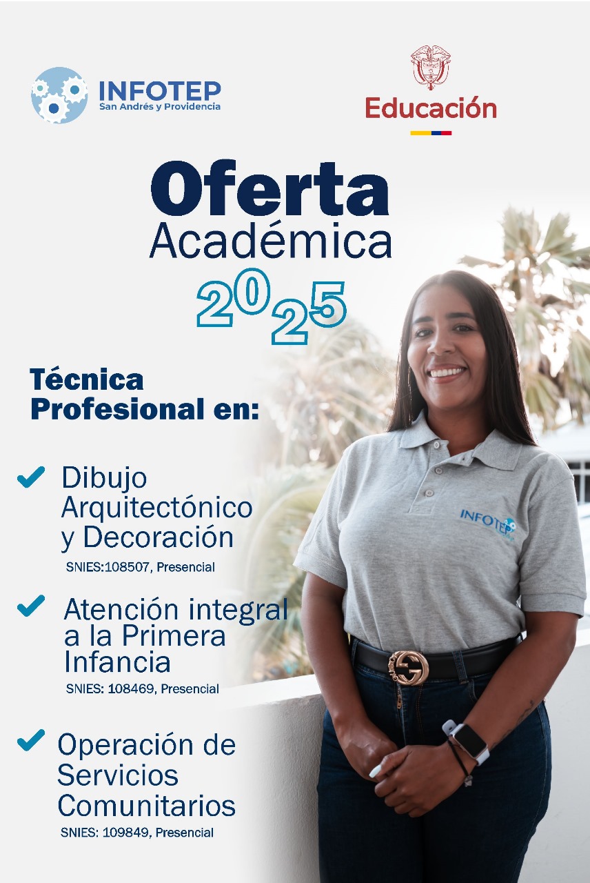 San Andrés Isla, 3 de diciembre de 2024. El Instituto de Formación Técnica Profesional de San Andrés y Providencia – INFOTEP, se enorgullece en presentar su oferta académica para el año 2025, que incluye programas técnicos, tecnológicos y profesionales en diversas áreas de conocimiento, diseñados para construir proyectos de vida sólidos y brindar oportunidades únicas en el archipiélago de San Andrés, Providencia y Santa Catalina. Las inscripciones estarán abiertas hasta el 17 de enero de 2025 y, en línea con la política de matrícula cero, el único requisito es no contar con una carrera universitaria previa​.