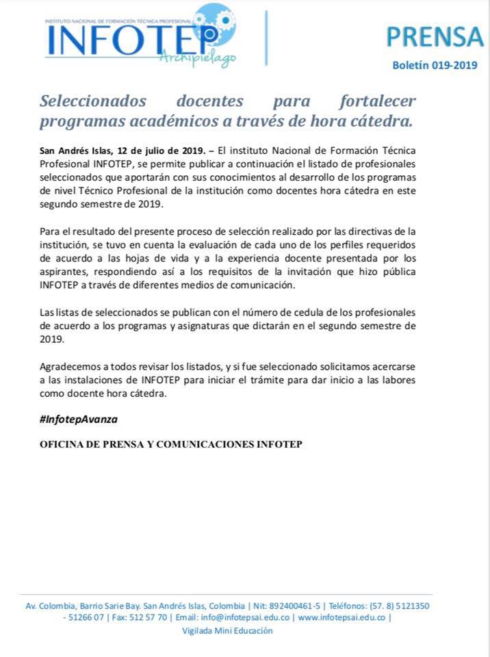 Resultados convocatoria docente