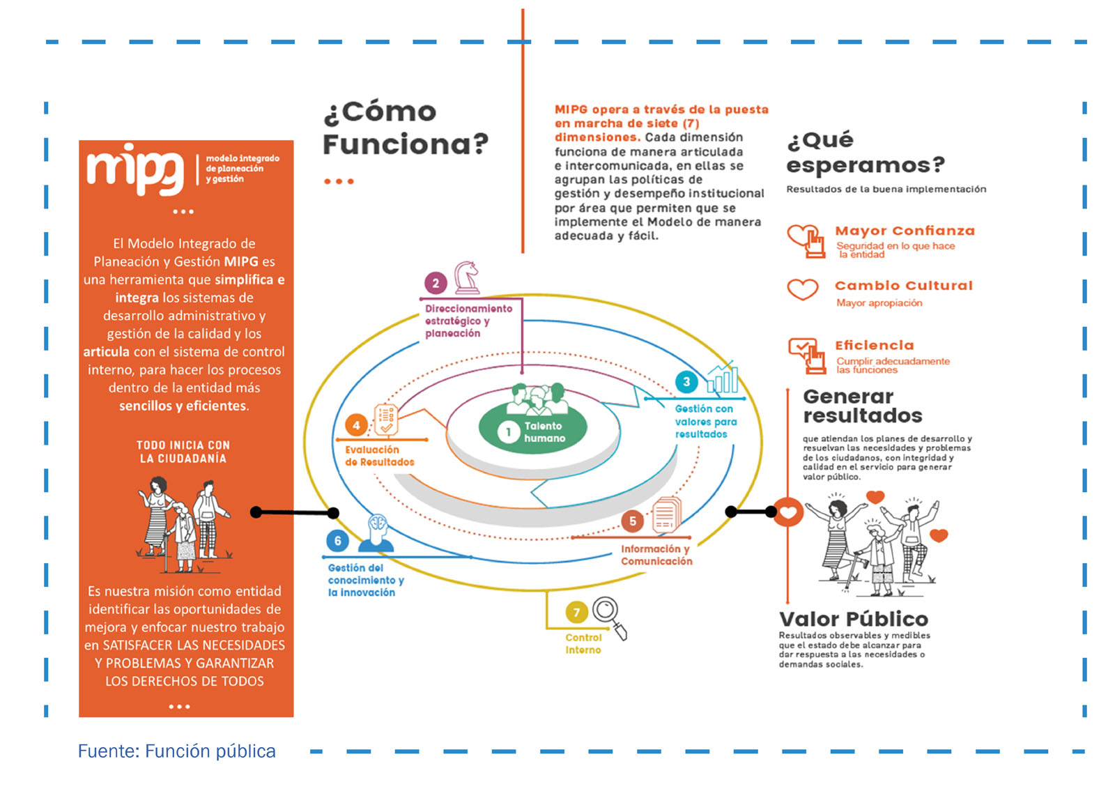 Este modelo permite generar resultados que atiendan los planes de desarrollo y resuelvan las necesidades y problemas de los ciudadanos, con integridad y calidad en el servicio.